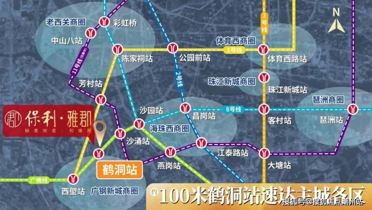 交通配套,走路100米可到【鹤洞地铁站】,可搭乘广佛线,往东2个站到海珠(沙园),可以换乘8号线去往琶洲,往西1个站到西塱,可以换乘1号线去往越秀、体育西等。【鹤洞站】出发一个站到【沙涌站】,即可换成地铁11号线(预计2024年底开通)这是广州中心区大环线,可以通达环市东、珠江新城、天河北、琶洲等多个CBD。驾车出门就是鹤洞路,往东经过鹤洞大桥,10分钟就到海珠西,转芳村大道可以接驳珠江隧道去老西关,洲头咀隧道和东沙隧道可以去海珠西,环城可以去到中心各区,往西经芳村大道南去佛山。