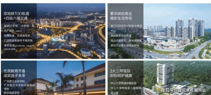 【交通路网】双地铁三轨道,四纵六横交通网络。双地铁口,镇龙TOD、中新站;三轨交汇,14号线、21号线、新白广城轨(在建中)。四纵,华南快速、京港澳高速、新新大道、珠三角环线高速;六横,广河高速、广汕公路、增天高速(建设中)、花莞高速(建设中)济广高速、广园快速。