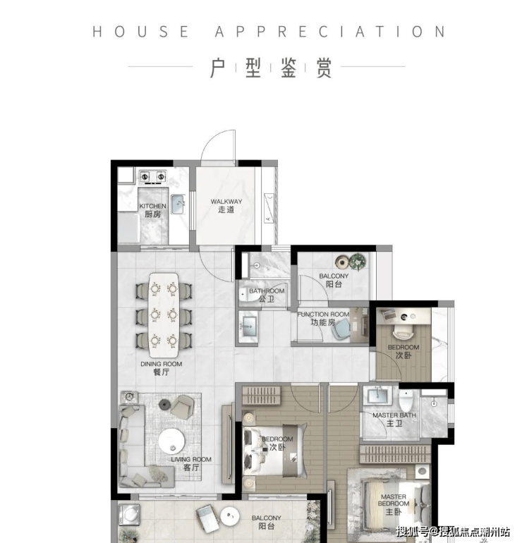 (本户型为2/3栋的04户型)超大赠送,所有房间赠送飘窗,阳台面积赠送一半,极具性价比。