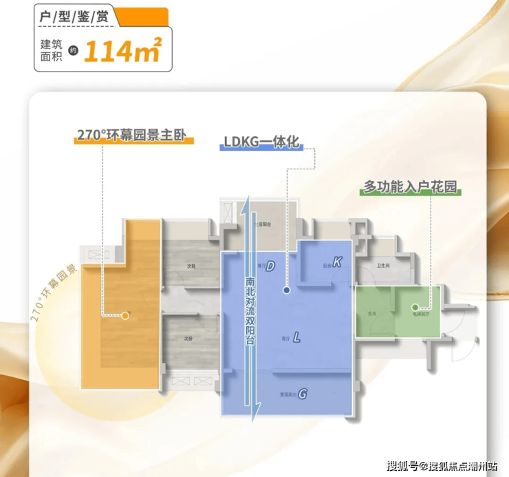 建面约114平四房,这个户型最大亮点是“X可变空间”和南北对流双阳台,把生活决定权完全留给业主。