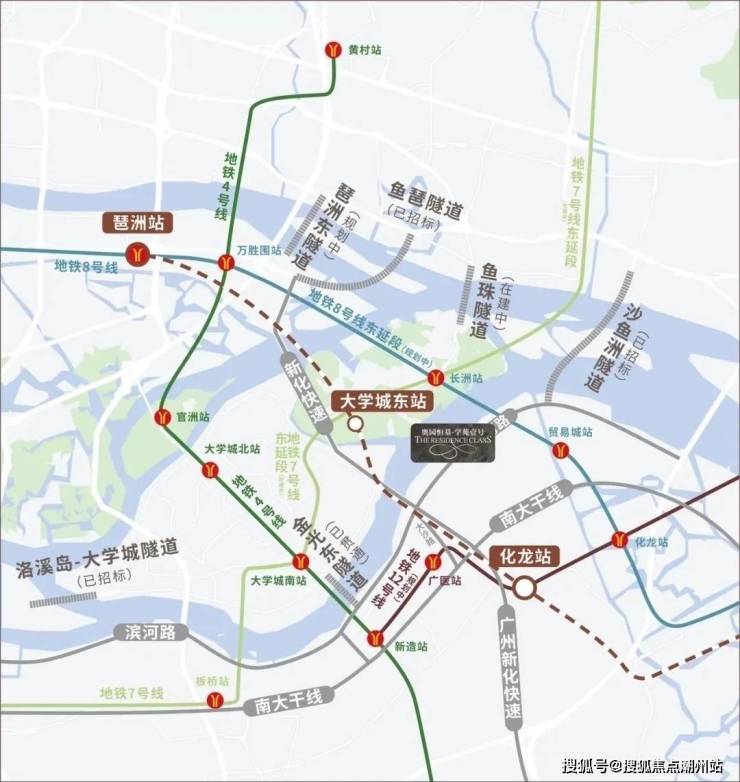交通配套城轨两站即达琶洲 多轨道隧道集中兑现,4轨道环绕,两站即达琶洲,4道路通勤,15公里达珠江新城。