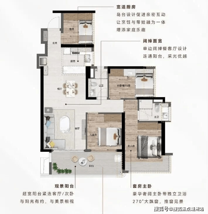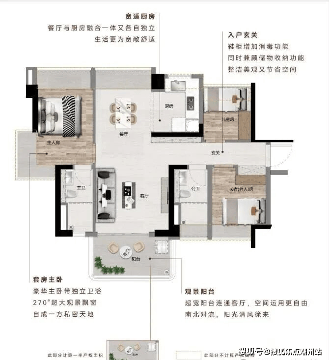 南北通透|主卧270°飘窗+双飘窗|南向观江景阳台