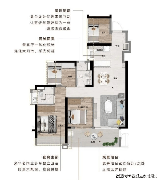 主卧 270°大飘窗|U 型厨房|动静分区