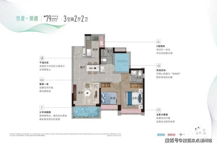户型:79㎡、86㎡、102㎡三房两卫-四房两卫