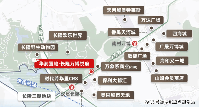 交通配套;地铁:距离3/7号线汉溪长隆站约250-500米,步行8分钟;1站换乘18号线直达南沙、中山等。
