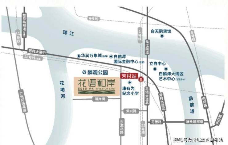 花语和岸位于白鹅潭核心区,属荔湾芳村板块。花语和岸的前身是荔湾羊城食品厂地块,真真正正白鹅潭CBD商圈内,当时13家参与报价、4秒地价封顶摇号,最终被武汉城建以折合楼面价为3.2万/平拿下,联合央企保利共同开发。