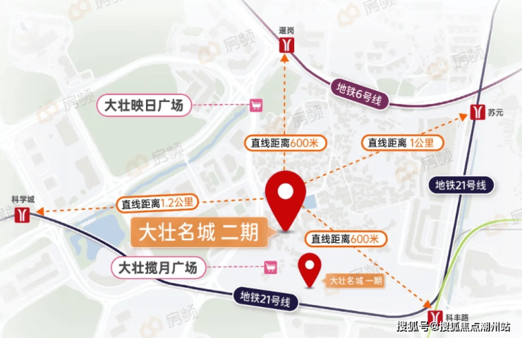 大壮名城·名门占据城市核心地段——科学城核“芯”黄金2公里(科丰路与开创大道的十字路口交汇处),集聚政务中心、商贸中心、发展中心于一体