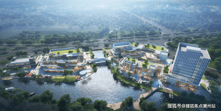 项目规划了36万方的E-TOD生态综合体,通过整体布局和整体开发,实现了商业、教育、住宅、休闲等业态的交融。社区内的商业配套由中海配建,初步规划沿着水系排布,融入高低错落的设计,与海珠湿地公园形成空间共融,为居民提供了高端、精致、时尚的购物体验。