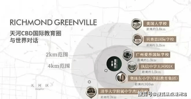 项目教育配套:项目自身配建幼儿园,周边还有加拿大中英文幼儿园、广州幼儿师范学校附属幼儿园。小学奥体东小学,华阳教育集团旗下校区。执信中学天河校区、清华大学附属中学湾区学校华师附外美式高中、广州奥林匹克中学、华南师范大学附属外国语学校。广州梅沙学院国际学校。
