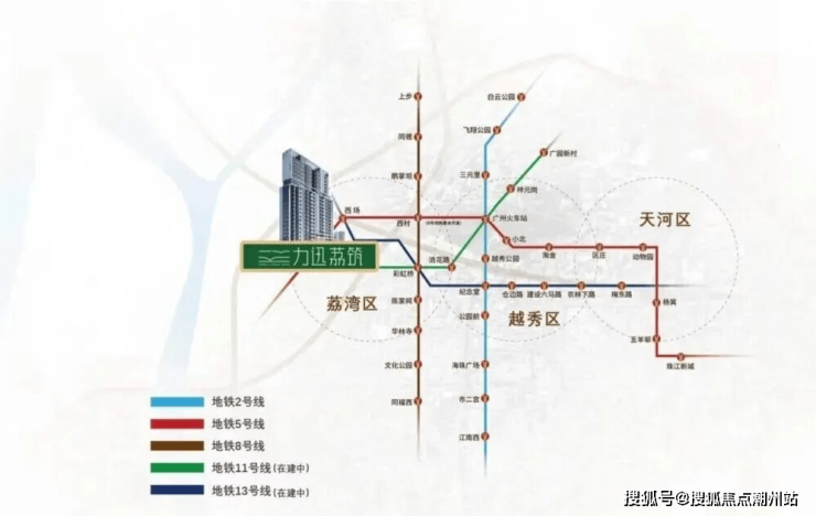 力迅·荔筑项目下楼即达地铁5号线与在建中的13号线二期西场站,2站即达越秀、9站珠江新城。