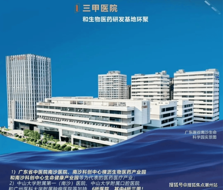 项目医疗配套:项目3公里范围内有中山大学附属第一(南沙)医院、广东省中医院南沙医院等3所三甲医院,1.5公里内还有南沙区第一人民医院、中医院。