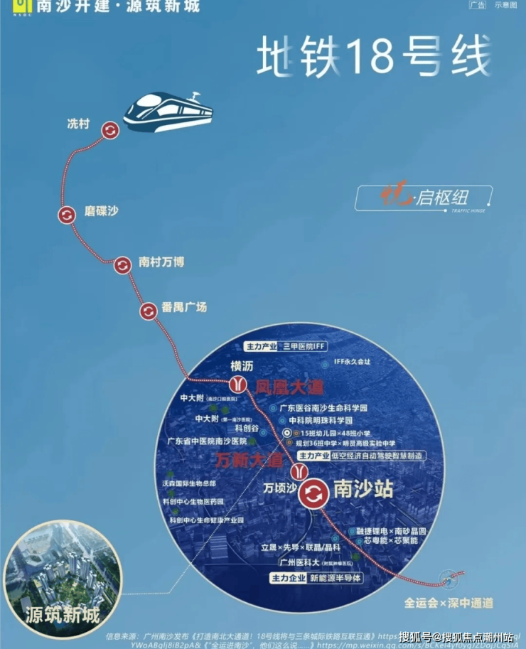 项目交通配套:项目紧邻南沙站(规划14台29线,规模超广州南站),通过深中通道、地铁18号线等可快速连接深圳、港澳等大湾区核心城市,形成“半小时交通圈”,未来交通潜力巨大。