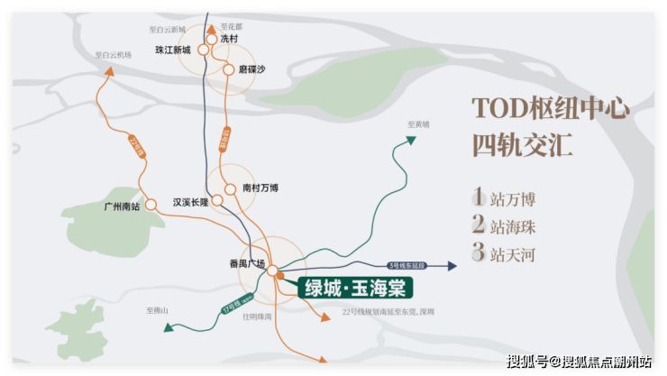 项目紧邻番禺广场地铁站,该站点是18号线、22号线、3号线以及未来规划中的17号线的交汇点,极大地便利了居民的日常出行。此外,项目位于亚运大道与番禺大道的交汇处,交通网络发达,方便驾车前往广州市内各个区域。