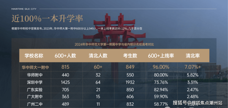 根据华中附校中官微发布,2023年,华中师大第一附中600分以上949人,一本上线率高达99.12%,几乎百分百。
