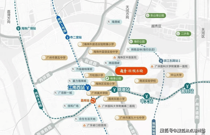 交通配套项目距离8号线晓港地铁站仅600米,乘坐8号线可直达琶洲、客村等商务区,1站到昌岗可以换乘2号线到南站、白云新城,3站换乘3号线到珠江新城、体育西等核心区,乘坐地铁去珠江新城和琶洲都可以控制在30分钟以内。项目家门口就是东晓路,周边还有昌岗路、新港西路、内环等干线,出行都很方便,自驾或地铁通勤珠江新城。