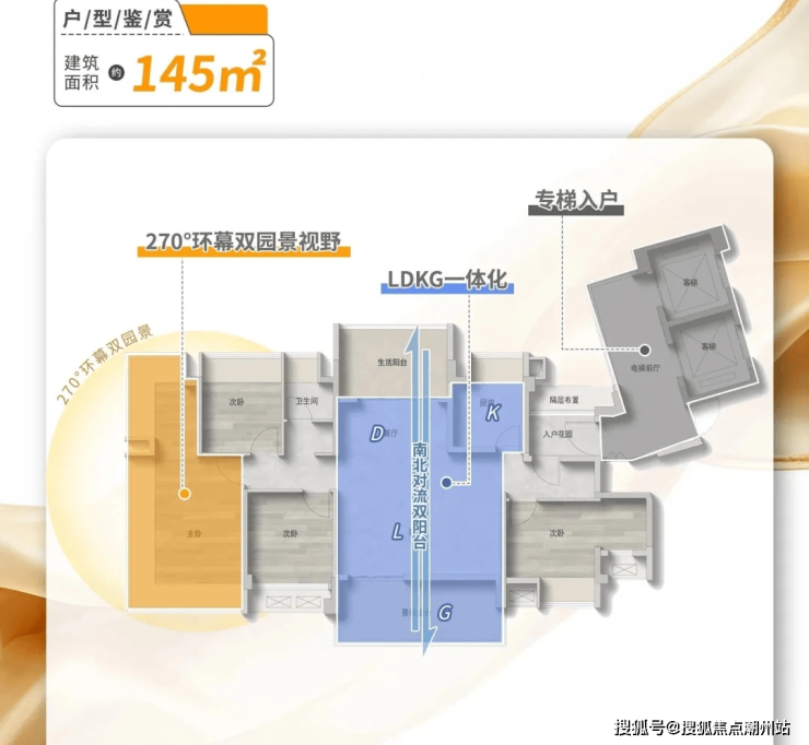 产品:项目总共4栋楼、约460套货量,一栋2T5,两栋2T4,一栋3T3。全南向设计,主推建面约为90-114-144㎡的三至四房。