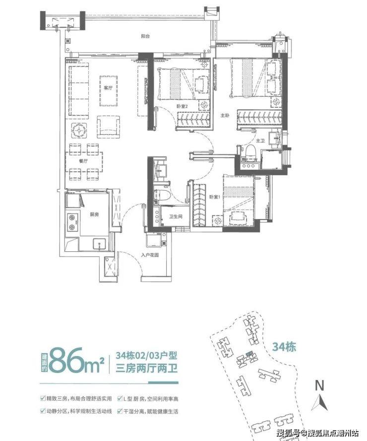 户型鉴赏:建面约86㎡南北通透三房,南北对流,采光通透,空间视野开阔,布局方正舒适实用,客厅直通南向阳台,引更多清风和阳光入室,缔造质感生活。