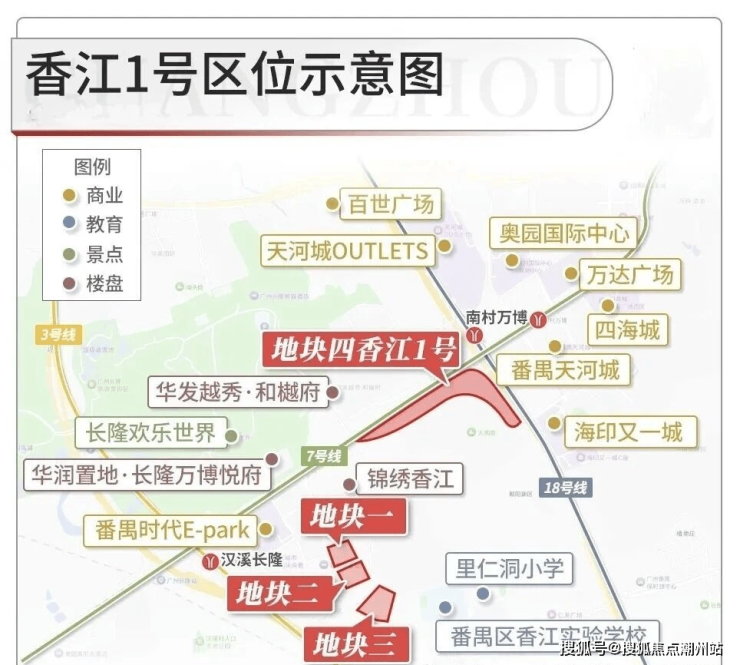 香江1号项目地段位置相当不错,一路之隔就是长隆万博CBD,小区门口就是地铁18号线南村万博,而身后看的锦绣香江别墅群。