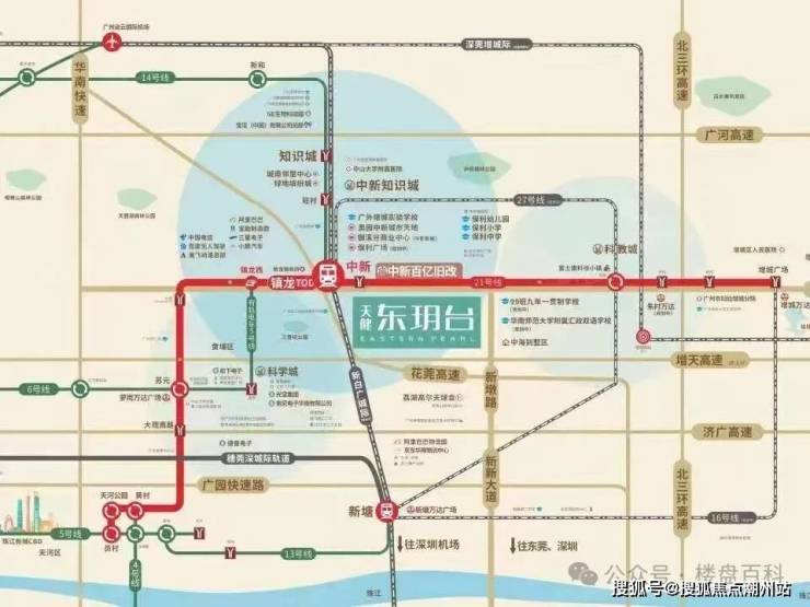 位于广州市增城区中心镇新墩路36号,广州地铁21号线中新站几百米处,快线3站到天河;坐落于知识城、科学城、科教城三城核心、广深科技走廊腹地,是广州东进的不限购首站,享受城市东进红利。