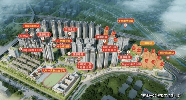 休闲配套项目打造约26万㎡立体生态花园,面积媲美36个标准足球场。规划5大特色儿童乐园(含2000㎡旗舰乐园)、家庭农趣园、水景游乐区、泳池、篮球场及4条总长2.6km的环区跑道,构建全龄健康生活场。斥资7亿元打造新塘首个千亩湿地生态区,推窗即享自然绿意。