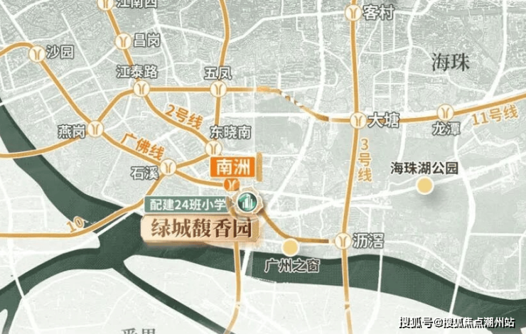 适合海珠西周边地缘刚需改善客户,广州地铁2号线沿线也可以适当关注,交通更是它的一大亮点,距离地铁 2 号线 / 广佛线换乘站南洲站直线距离约 100 米,从南洲站 C1 口出来,就能直接到达海珠客运站,这对于每天需要通勤的上班族来说,简直是 “梦中情站”。