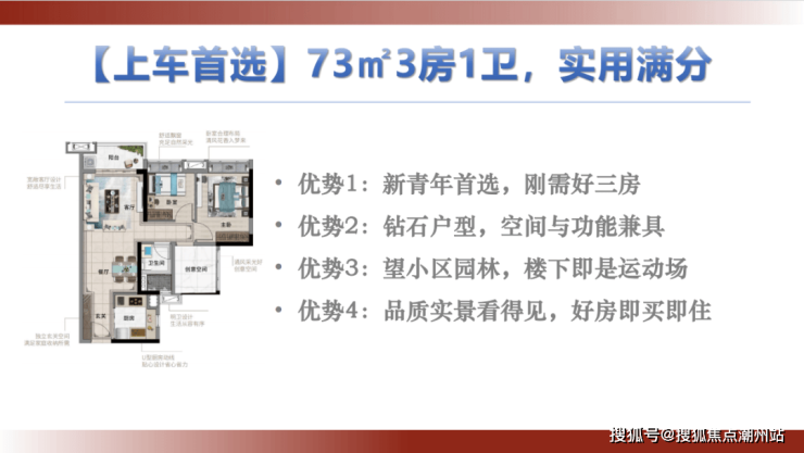建面约84㎡带主套宜居“2+1”户型,生活从容自得,南向望园林;带主套,双卫设计,满足三口之家的幸福生活。