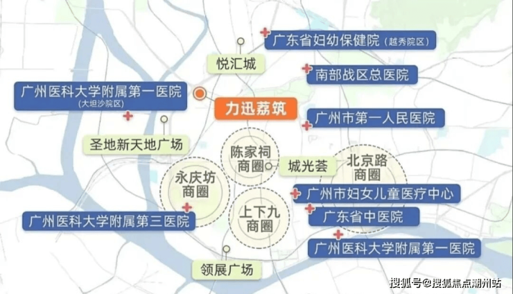 医疗配套项目3公里范围内广州市第一人民医院、广州医科大学附属第一医院、广东省妇幼保健院越秀院区、南部战区总医院、广州医科大学附属第三医院、广州市妇女医疗中心、广东省中医院等。
