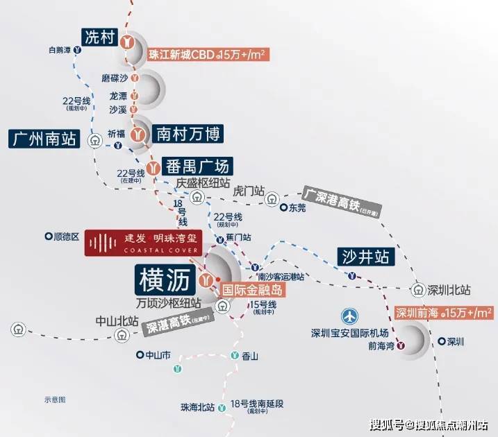 横沥站约250m(规划出口),2站珠江新城(快车)三地铁线环绕(地铁18号线,地铁15号线(规划中),NS2线(规划中))