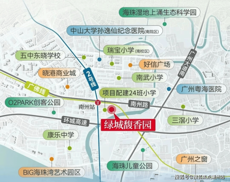 适合海珠西周边地缘刚需改善客户,广州地铁2号线沿线也可以适当关注,交通更是它的一大亮点,距离地铁 2 号线 / 广佛线换乘站南洲站直线距离约 100 米,从南洲站 C1 口出来,就能直接到达海珠客运站,这对于每天需要通勤的上班族来说,简直是 “梦中情站”。