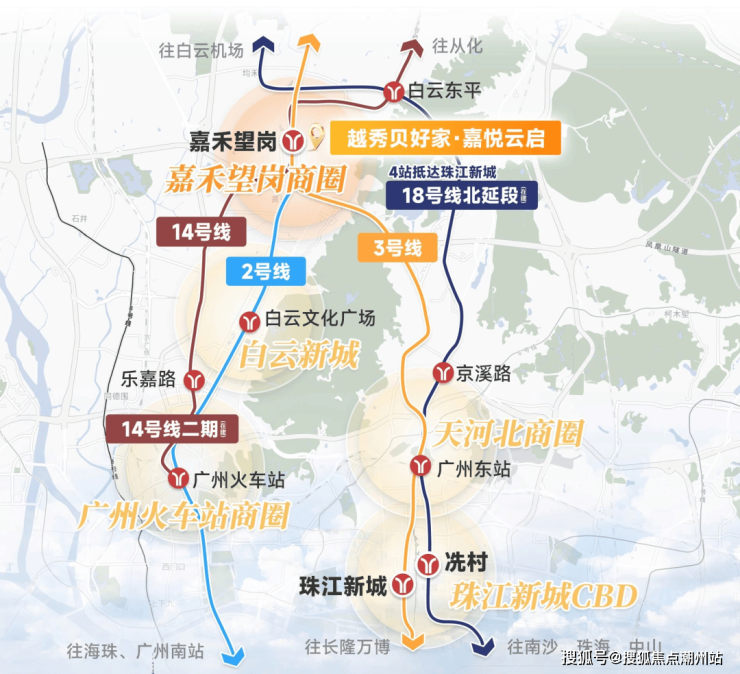 项目50米就是地铁2号线、3号线和14号线三地铁交汇嘉禾望岗站,30分钟内可直达珠江新城和越秀公园前,公共交通非常方便。自驾:有空港大道、白云大道等路网加持,出行高效。