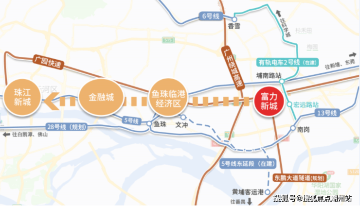 广州富力新城项目位于广州市黄埔区南岗,地处临港经济区与科学城板块的核心交汇处。它不仅处于黄埔大道和广园快速之间的“黄金发展线”上,而且紧邻万达广场,形成了一个集住宅、商业、教育等多功能于一体的大型生活社区。这里是广州的重要经济发展区域,也是连接珠江新城、金融城及鱼珠等地的关键节点。