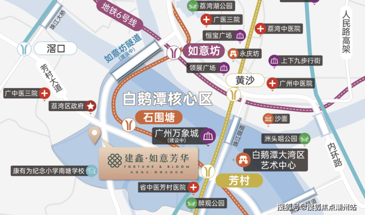 建鑫如意芳华售楼处电话:400-1500-885转888;广州建鑫如意芳华项目位于荔湾区,占地78874㎡,主打82-141㎡三至四房,配套齐全,临近11号线,品质舒适。