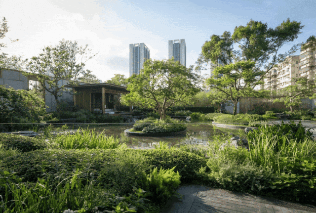 这处极具东方意韵的园林,为的就是能让业主感受到这种高造价新中式园林带来的意境层次,以及移步换景的归家体验。