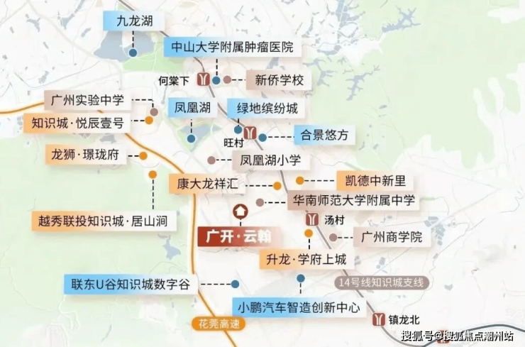 广开云翰交通配套位于知识城起步区,最近的地铁是14号线汤村站,距离约2公里。自驾有:创新大道、永九快速(建设中)两大城市快速路,快速接驳科学城及天河。高速:毗邻花莞高速知识城出口、连通广河高速、华南快速干线、从埔高速(建设中),便捷畅行湾区发展核心区。