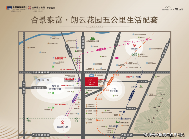 交通配套24号线夏茅站规划的落实,继14号线、2号线之后合景泰富·朗云花园周边又多一条地铁线,这让合景朗云成为三地铁汇聚的地铁物业。其中24号线夏茅站与项目步行仅百米距离,过马路即到,成为真正的家门口的地铁站。14号线鹤南站直线距离也仅800米,2号线黄边站直线距离也在2.5km以内。3条地铁有效连接广州各大交通主动脉,半小时畅达火车站、机场,这宣示出合景泰富·朗云花园宜居价值的再升级。