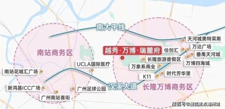 自驾的话,家门口钟顺路连接汉溪大道、南大干线(已开通),双动脉横贯番禺核心,约10分钟长隆万博CBD,约30分钟珠江新城。