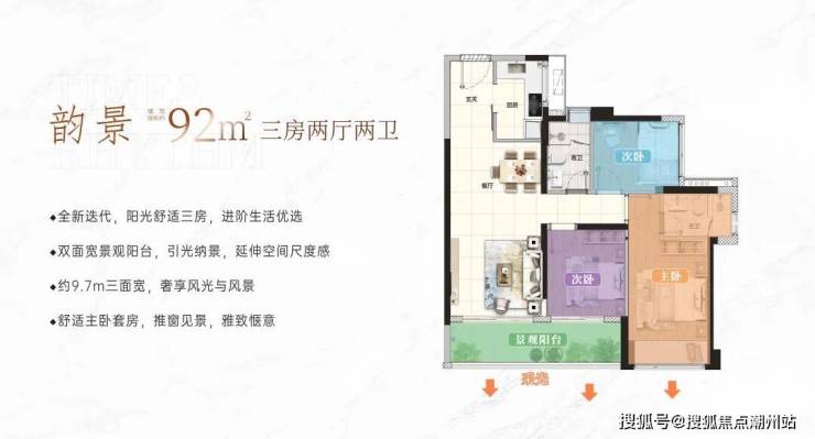 建面约92㎡三房两卫,舒居优选·阳光生活空间