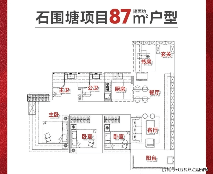 约87㎡4房2卫,4条梯腿,100套;