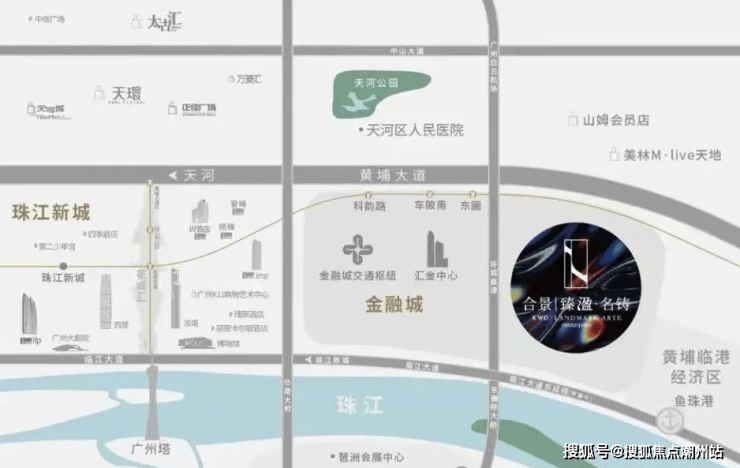 世界级交通枢纽,临江大道直达珠城:10分钟珠江新城,15分钟琶洲,金融城TOD(全国最大地下空间),15分钟南站,20分钟白云机场。