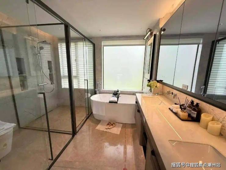 148平是项目首推最大的户型,双阳台设计,尺度感十分豪,户型布局也没什么可吐槽的,尤其是它主卧的卫生间,可以说是小编见过为数不多面积这么大的卫生间了,既有淋浴室,又放得下浴缸,关键是淋浴室跟浴缸占的面积都不小,小编的手机开了广角都拍不全,大家看照片感受一下。