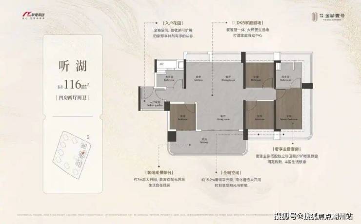 项目主推建面约98-149㎡全南向湖居四房,实现户户朝南、大开间、高得房率,全面提升居住舒适度。