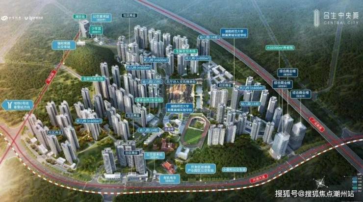 合生中央城位于科学城香雪板块,紧邻万科东荟城,项目为火村的旧改项目,由融资区和复建区组成。分6期开发,开发周期为5年,涵盖有住宅、商业、学校以及仿古建筑及景区等,为妥妥的“巨无霸”大城。