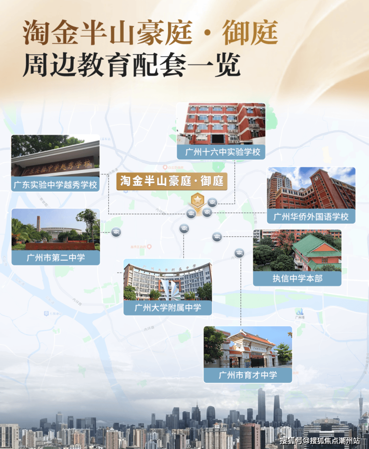 教育配套小区自有配套广州首间公办九年一贯制外语特色学校—【广州市华侨外国语学校】就在家门口!根据最新数据显示, 广州华侨外国语学校小升初比例高达约56%,学校中考成绩卓越不凡,连续14年居于越秀区辖公办学校之首。并且,越秀区小升初电脑派位分组中,汇聚3间市属省级重点中学( 执信中学、广州二中、广大附中)、 3间区属省一级中学( 培正中学、 十七中、省实越秀中学),共12间重点优质公办学校,是越秀区小升初派位组别中的至优配置!