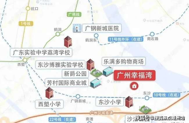 距离广州幸福湾最近的地铁站是1号线西朗站,约4公里,在建的地铁10号线(东沙站)、11号线(鹤洞东站)、22号线(东沙工业园站),未来距离项目仅800米左右的距离,出行会更加方便。