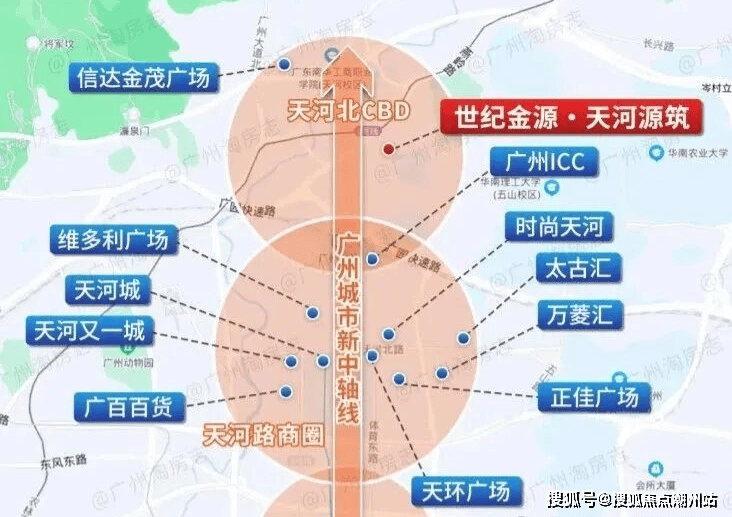 世纪金源·天河源筑位于天河北五山东莞庄路与伟逸街交汇处,号称天河北后花园,坐落在华工、华师、华农等高校环绕的区域,占位环五山创新策源区,距离珠江新城约4.5公里,驾车15分钟可达 。
