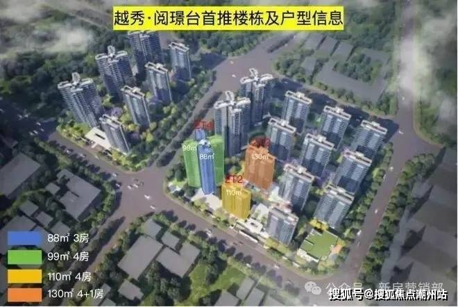 越秀阅璟台塔楼产品:两梯四户,88方三房、99方3+1房;板楼产品:两梯二户,110方、130方,值得点赞的是,板楼产品全都是只有东西向单边位的,没有中间户,采光通风一流。首开的三栋楼在大地块上,在入门位黄金位置上。