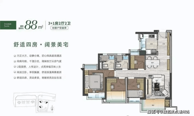 户型设计合理:主推建面约 72-105㎡户型,主打刚需上车,使用率很高,72㎡可做四房,满足不同家庭需求,且部分户型设计可变性强,业主能根据自身需求调整空间布局。