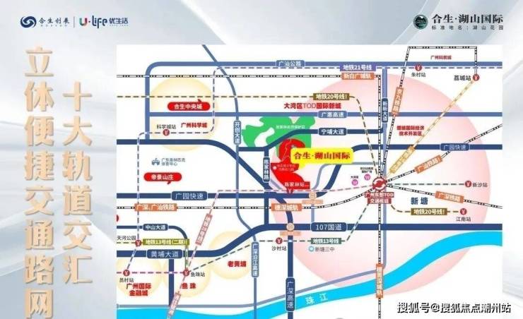 合生湖山国际坐落于增城新塘陈家林路,广园东板块,背靠陈家林自然保护区,东邻凤凰城,西靠陈家林路,南邻荔枝文化村,广深、广惠、广园高速、107国道交错,增25路公交3站无缝接驳地铁13号线。地处粤港澳大湾区C位,占位广州东TOD国际新城核心,九轨交汇连接处,湾区速度,随着新塘穗莞深城轨开通,公共配套的同城化,以及地价的水涨船高,项目潜力巨大。