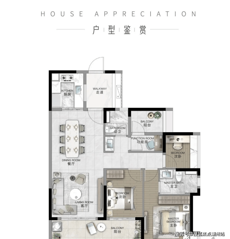 (本户型为2/3栋的04户型)超大赠送,所有房间赠送飘窗,阳台面积赠送一半,极具性价比。