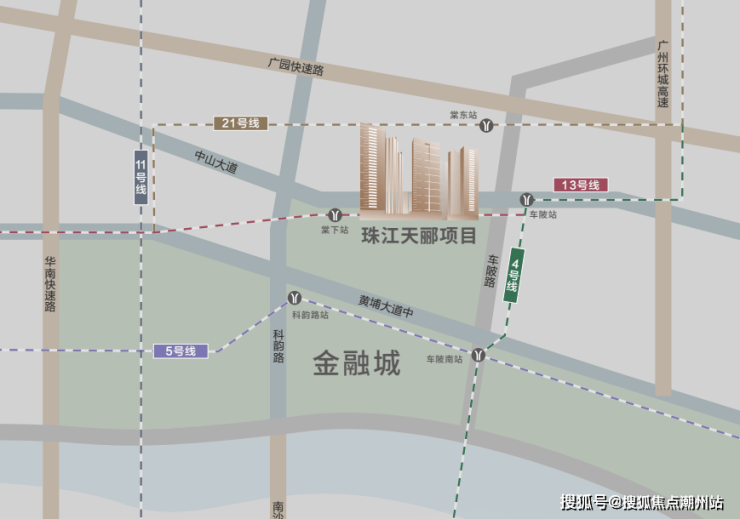 交通配套:项目位于4号线车陂站西边直线约600米,楼下就是BRT,现成的地铁有4号线,5号线,21号线,还有在建的13号线二期,轨道交通发达!后期13号线二期开通之后,业主可以通过500米私家连廊,接入合生汇广场,连贯地铁站13号线棠下站。道路交通方便,出门即是中山大道,附近有广园快速,华南快速,黄埔大道,和开通的车陂南隧道,能快速到达天河珠江新城,和海珠琶洲等中心区域。